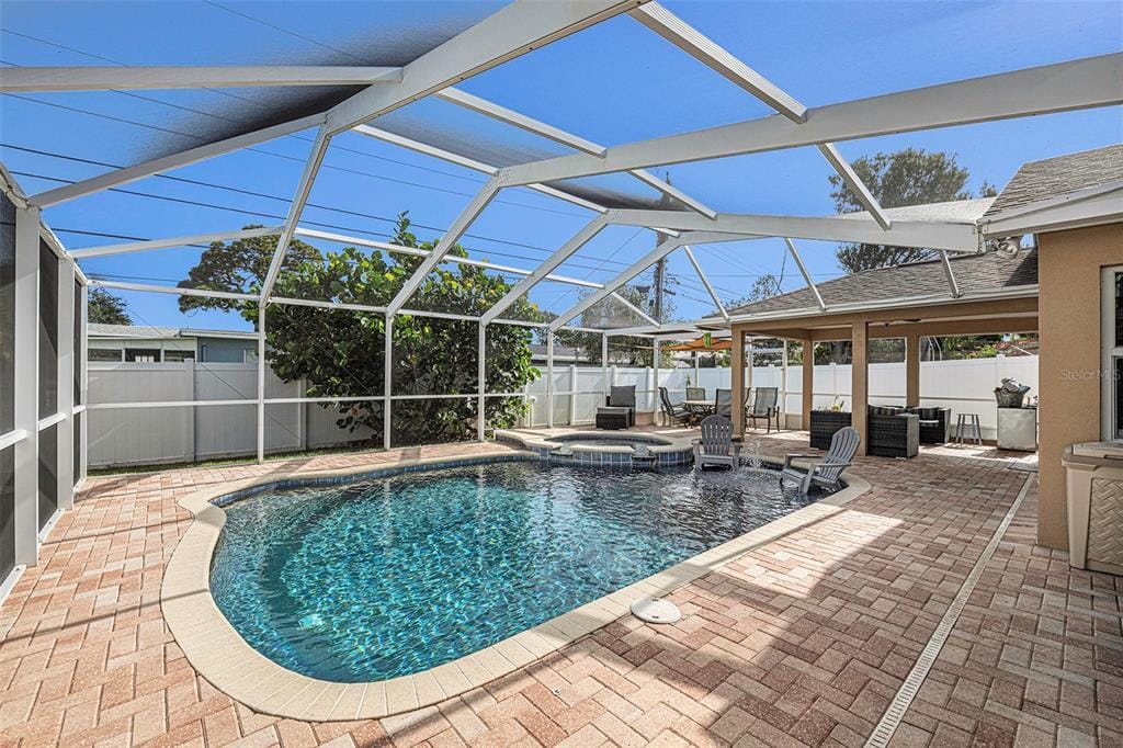 Welcome to your coastal sanctuary, a dream come true for those looking for their own paradise near the Gulf of Mexico! 3-bedroom, 2-bath, den/office, POOL home that blends comfort & relaxation, just a mere 3 miles away from the beautiful Gulf Beaches. From the moment you step inside, the welcoming ambiance of the large family room with a custom seashell-finished wood-burning fireplace with mantel, setting t...